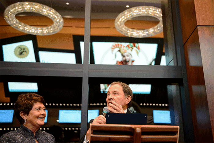 At a brief ceremony, Herbert proclaimed Nov. 16 as Hale Centre Theatre Day. Co-founder Sally Dietlein thanked everybody who help build the fancy new arts center. “Oh my goodness, there are a lot of everybodies out there, and you’re a spectacular-looking bunch,” she said, looking over the crowd that packed the theater lobby and filled the staircase.