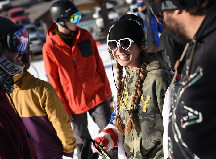 (Francisco Kjolseth | The Salt Lake Tribune) Brighton resident Sidney Garrido is all smiles as she joins other skiers and snowboarders for opening day at Brighton Resort, Thursday, Nov. 15, 2018.