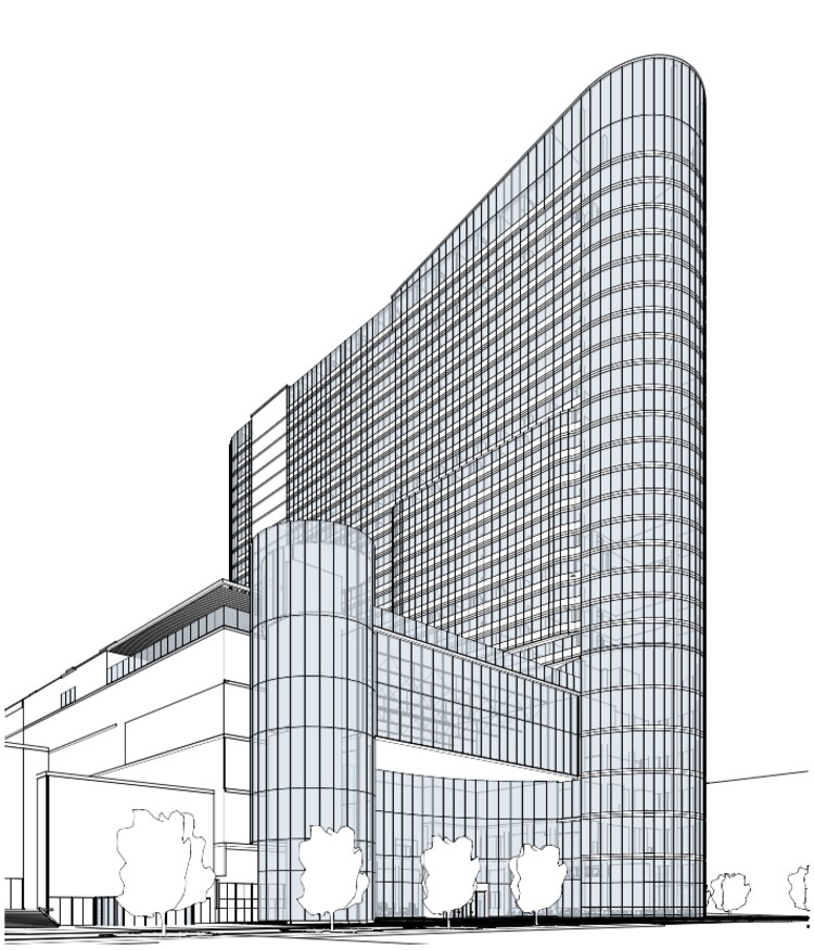 The new hotel’s design is being studied by city planners, based on the developers’ application for the tower to be 335 feet tall. Although a recently tweaked city zoning ordinance allows for buildings as high as 375 feet in that downtown area, anything above 120 feet triggers a site-design review to make sure it complies with other zoning rules.
