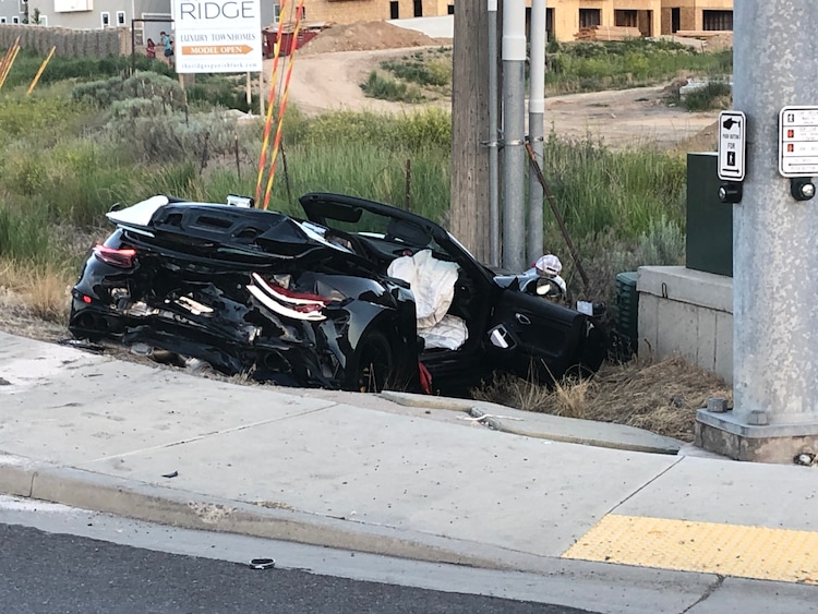 (Photo courtesy of Spanish Fork Police Department) A Porsche was one of four vehicles in an accident on U.S. 6 in Spanish Fork on Monday, June 24, 2019.