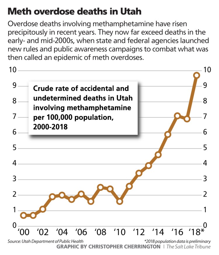 Market factors may explain meth’s rapid rise in Utah, Redd said. A pound of meth costs $1,000 to $1,500, with a single hit going for about $20, he said. That’s about a tenth of the cost in the early 2000s, he said.