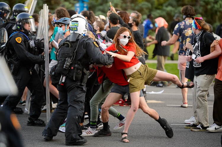 Two others demonstrators were taken into custody on misdemeanor allegations of failure to disperse. One was also accused of a misdemeanor assault on a police officer.