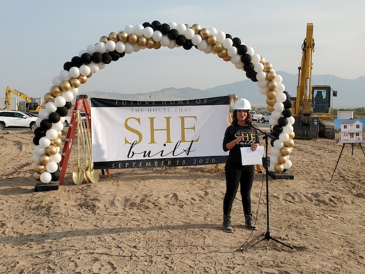 (Becky Jacobs | The Salt Lake Tribune) Kristin Smith speaks Friday in Saratoga Springs at the groundbreaking for one of the first all-female-built homes in the country.