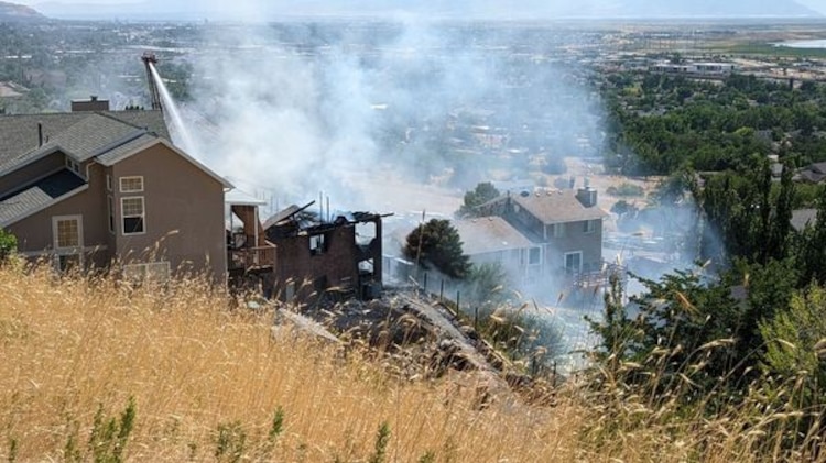 About a dozen nearby homes were evacuated as fire crews from South Davis, Farmington and Kaysville battled the house blaze. The victims’ house was destroyed, and two adjacent homes were slightly damaged by the flames and heat.