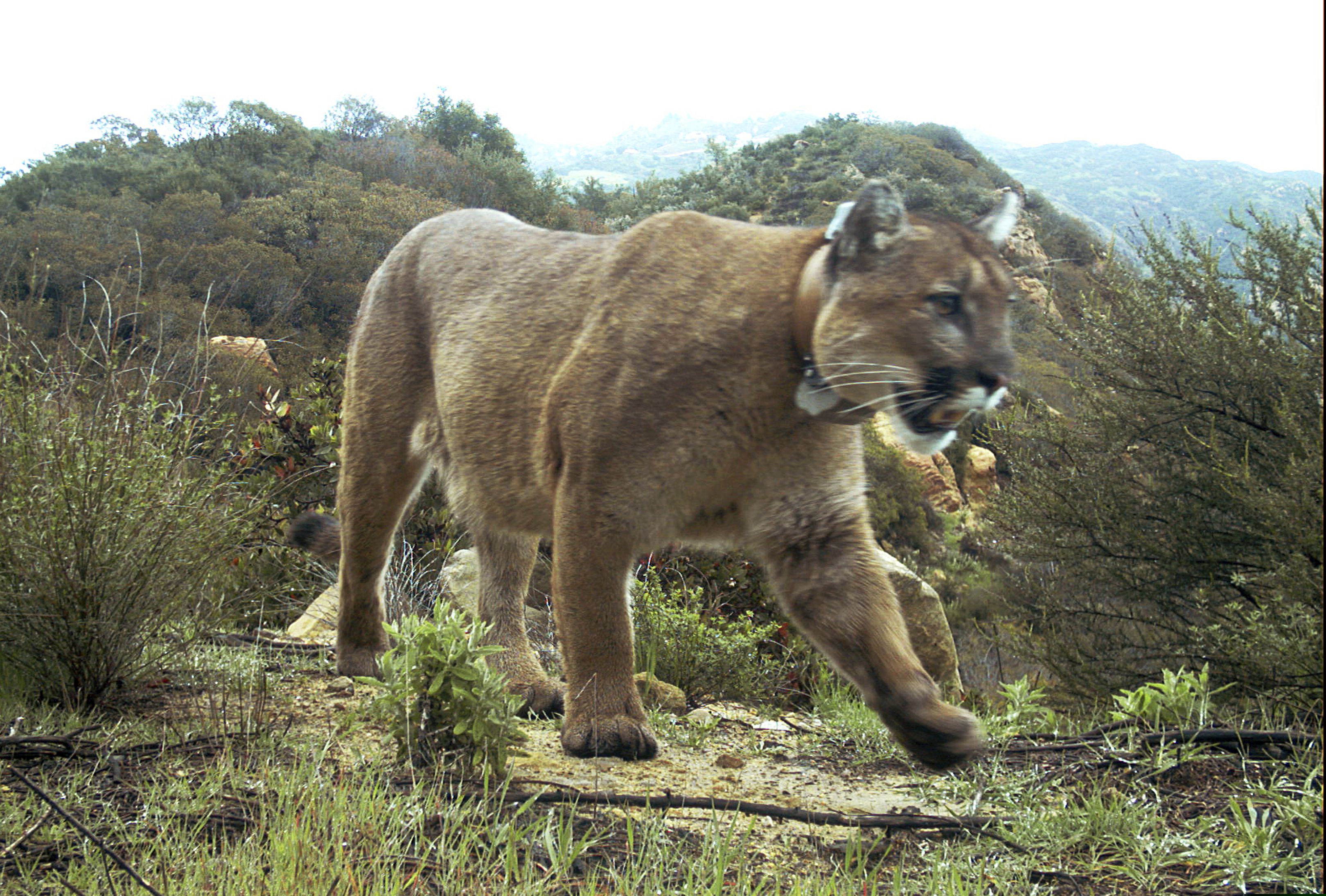 (National Park Service via AP) This Feb. 14, 2019, photo provided by the National Park Service shows a mountain lion known as P-47 in the Santa Monica Mountains National Recreation Area west of Los Angeles.