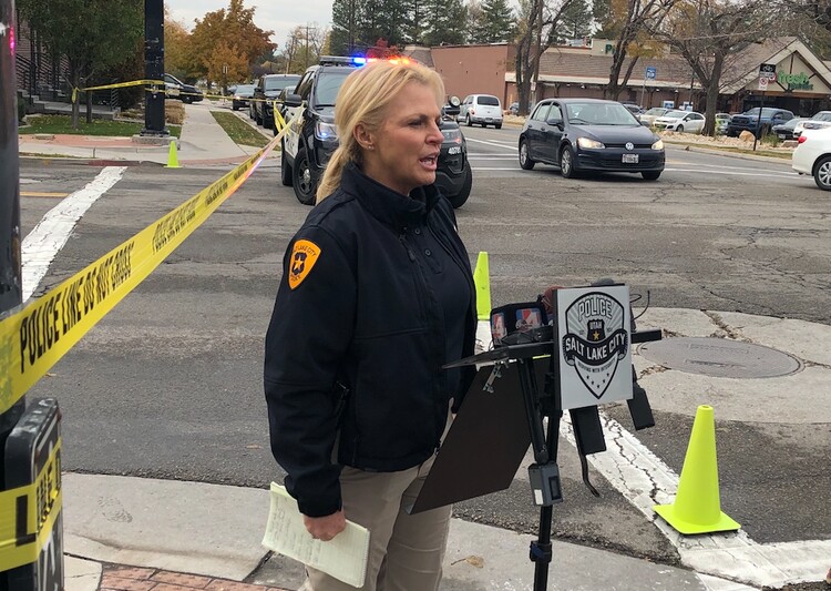 (Kolbie Peterson | The Salt Lake Tribune) Detective Michelle Peterson gives an update to media about a shooting that happened in Salt Lake City on Tuesday, Nov. 8, 2022.