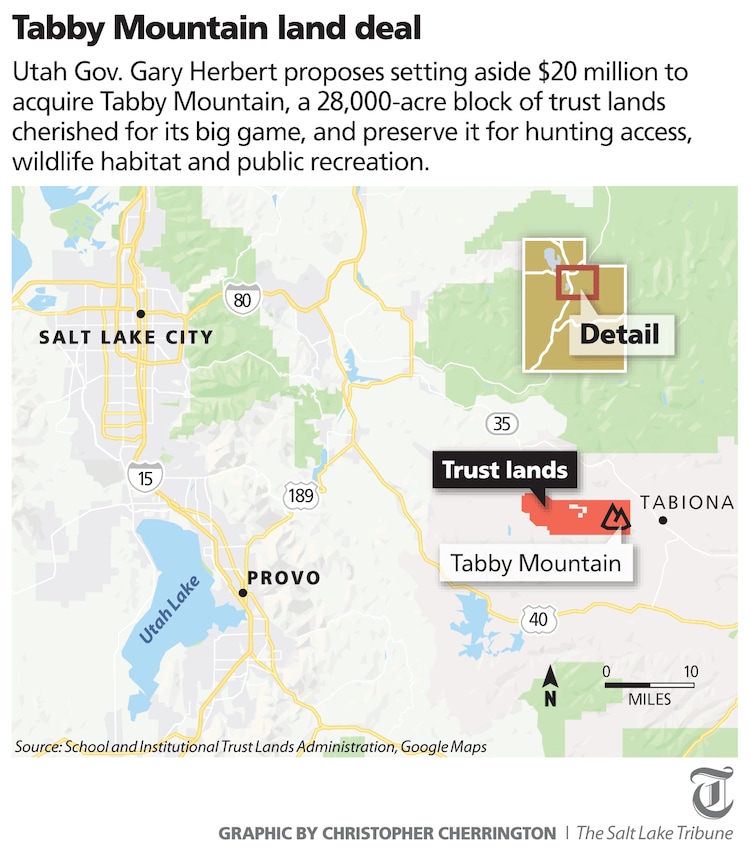 “By purchasing Tabby Mountain, DNR can protect and keep public one of Utah’s most pristine and desirable high-elevation areas,” agency spokesman Nathan Schwebach wrote in an email. “Tabby Mountain is a crucial wildlife habitat for mule deer, elk and greater sage grouse. It’s a migratory corridor for big game and a significant recreational destination for hunters, campers, wildlife viewers and others.”
