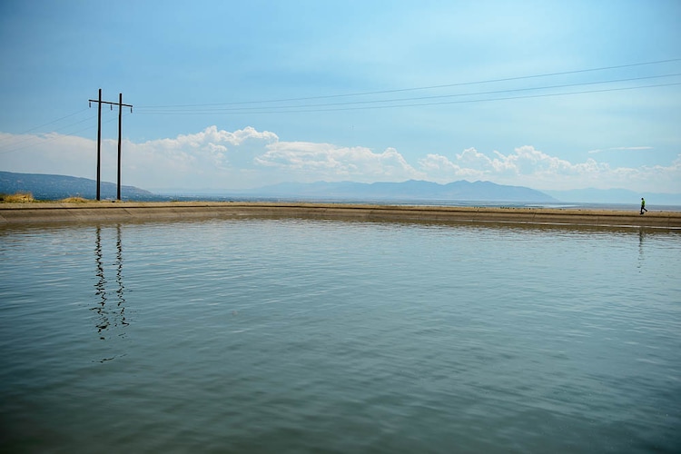 (Trent Nelson | The Salt Lake Tribune) Andy Golden of Benchland Water District at Reservoir B in Farmington, Wednesday July 25, 2018. The reservoir typically holds between 15 and 20 million gallons of water.