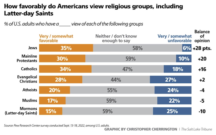 Americans have a far more positive view of Jews, Catholics and mainline Protestants than of Latter-day Saints.