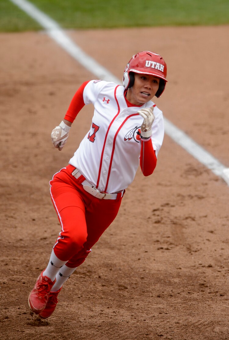 Steve Griffin | The Salt Lake Tribune Utah's Anissa Urtez rounds third as she scores a run during the NCAA softball regional game against BYU at Dumke Family Field at the U. of U. in Salt Lake City Friday May 19, 2017.