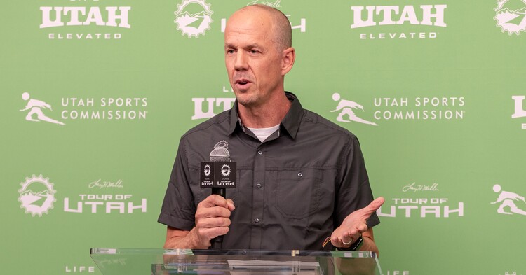 (Photo courtesy of the Utah Jazz) John Kimball speaks at a previous Tour of Utah event. Kimball is now the interim president of Real Salt Lake, helping the club through an ownership transition. He says the ongoing search for a new team owner has begun to pick up some momentum.