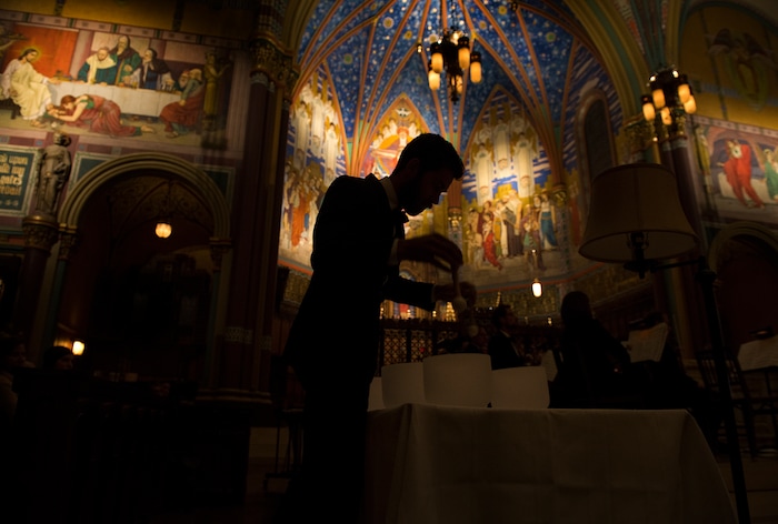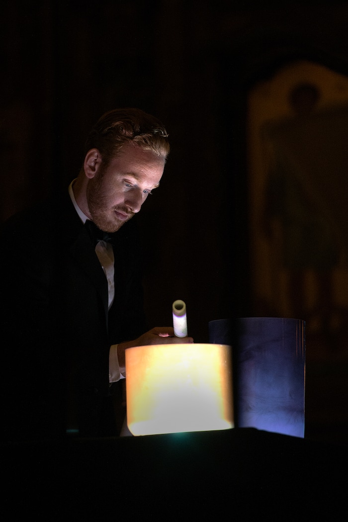 The other high point was “Bridges,” a new work by Christopher Bradford — Barlow’s son and Dorothy’s grandson — that closed the program. “Bridges” skillfully incorporates choir, percussion, string orchestra and seven crystal singing bowls. The bowls — beautifully illuminated from below by Christopher Dance, and struck and stirred by Utah Symphony percussionists Keith Carrick, Eric Hopkins and Michael Pape — played a unifying role throughout the evening, introducing the 16th-century chant that opened the concert and tying together several of the ensuing selections, which unfolded in a ribbon of sound from throughout the church. Human and crystal voices blended to particularly gorgeous effect on Galina Grigorjeva’s “Spring Is Coming.” But the bowls achieved full potency in “Bridges,” filling the space with a feeling of peace as the choir sang, “More must learn the healer’s art.” The work closed with a miraculous near-minute of silence, as the crowd sat in holy community in the dark cathedral.