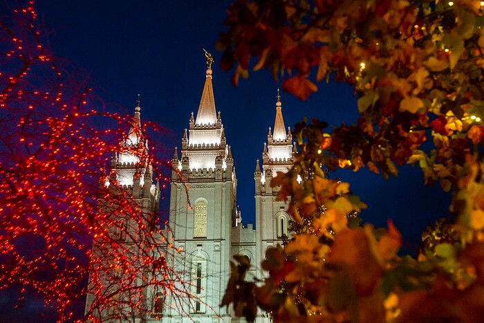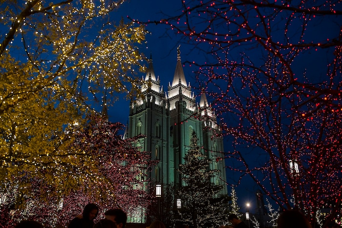 Jeremy Harmon | The Salt Lake Tribune) The Salt Lake Temple is seen surrounded by Christmas lights on Friday, Nov. 24, 2017.