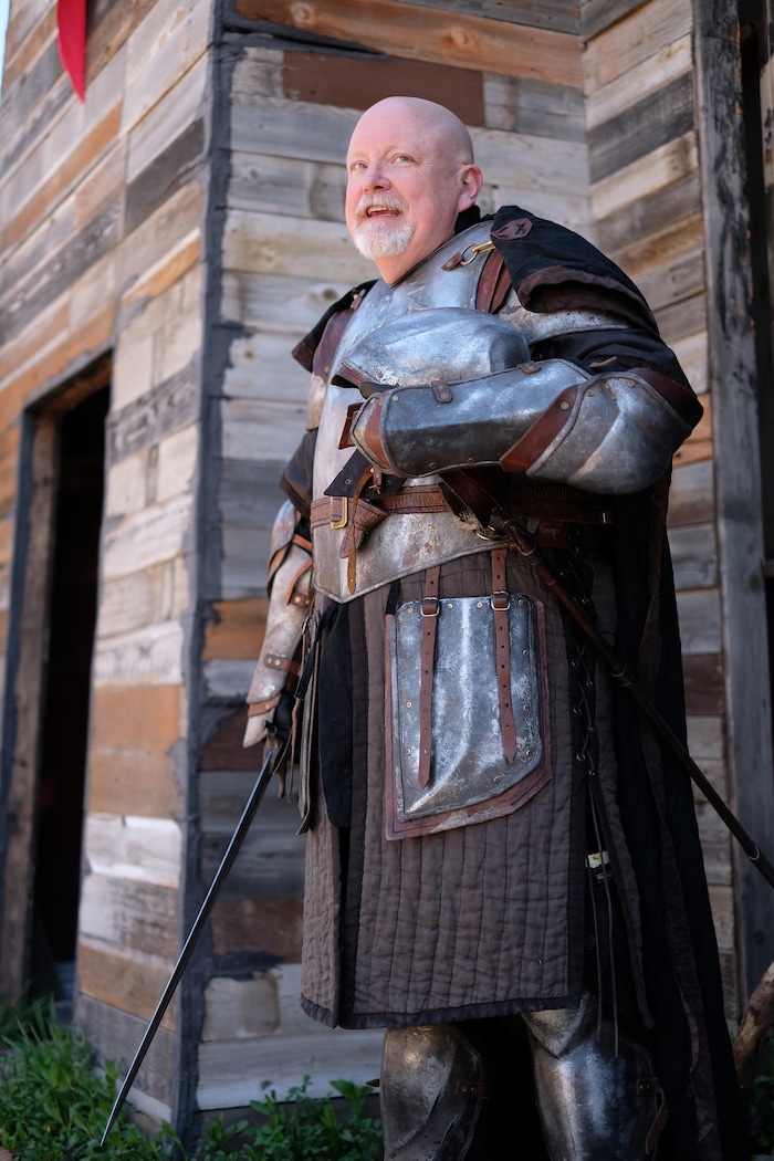 The armor can get “a little toasty” when shooting indoors, however. And on a not-too-warm day in April, you could see armored actors and extras trying to keep cool while wearing costumes that look a lot heavier than they actually are.
