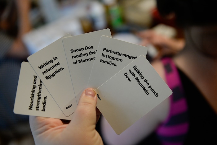 Expansion packs for the game go deeper. One is based on quotes from speakers at LDS General Conference. Another, called “Utah: The Rill Dill,” is specific to Beehive State oddities. (One card points out there is “lots of great barware at the DI because no one knows what it is when they’re cleaning out Grandma’s cabinets.”) The latest set focuses on a recent Utah obsession: the Broadway musical “Hamilton.”