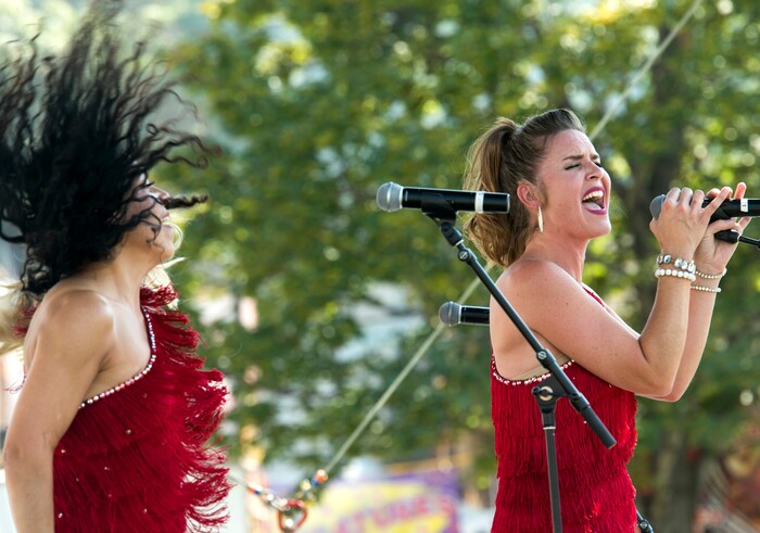 (Rick Egan | The Salt Lake Tribune) Divas through the Decades perform at the Gazebo stage, on opening day of the Utah State Fair, Thursday, Sept. 6, 2018.