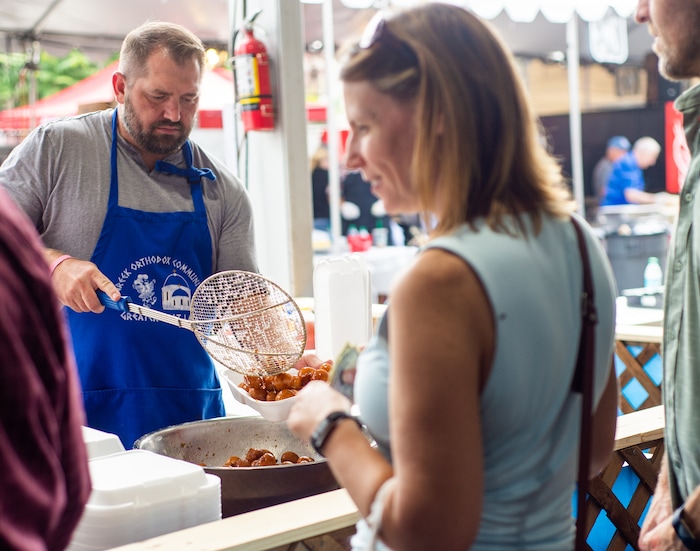 People waited in line Saturday to try an array of phyllo-wrapped foods like baklava, spanakoiata and galaktoboureko. There were also gyros, meatballs, lamb dinners and vegan options.