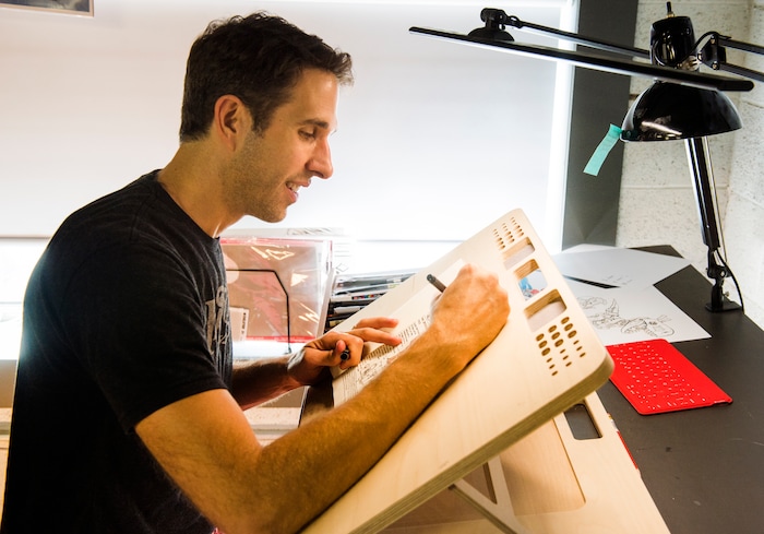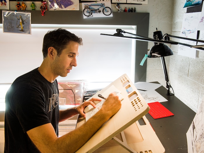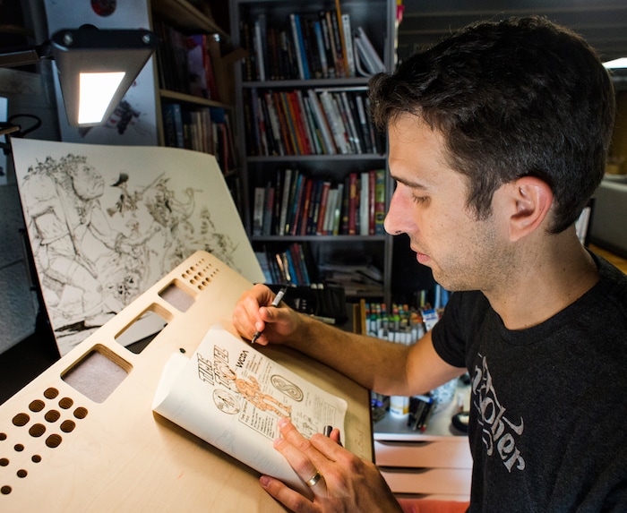 “I wanted to get better at inking,” recalls Parker, who was working in an animation studio in Connecticut at the time. “A friend had this Japanese pen that he brought back, and it had a brush tip, and it was kind of unwieldy.”