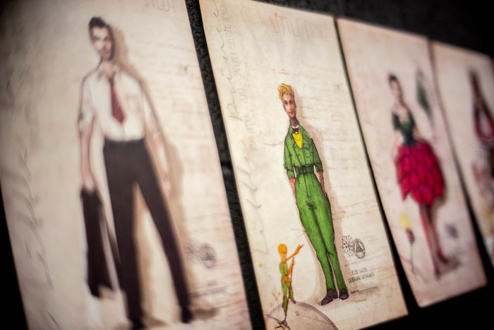 Weeks later, the costumes and sets envisioned by New York designer Jacob A. Climer have been created by the Utah Opera Production Studios — their look inspired by World War II-era Long Island, where Saint-Exupéry wrote the novella. Costumes evoke the period with jodhpurs and elegant calot hats; the action occurs within a study, with walls that move out to reveal the world of the story, the sand of the novella’s desert landscape replaced by dunes of paper, imagined as book pages.