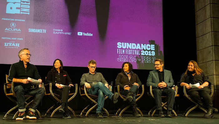 The bulk of the news conference was a conversation among members of a friendly panel, led by the festival’s director, John Cooper. Joining him on stage were the festival’s new programming director, Kim Yutani, and senior programmers John Nein, Shari Frilot, David Courier and Caroline Libresco. There was no back-and-forth with the reporters in the audience, as festival organizers asked for questions to be pre-submitted online.