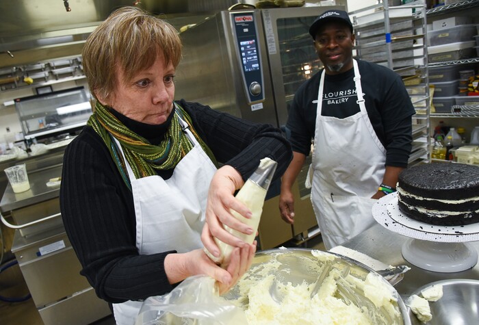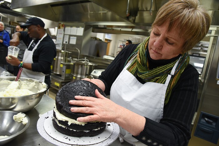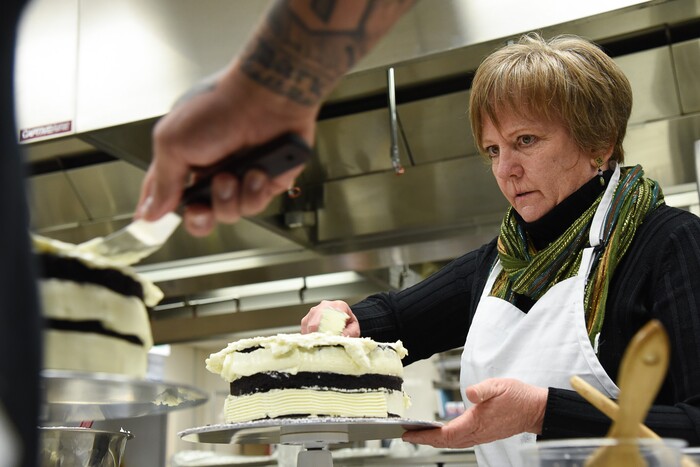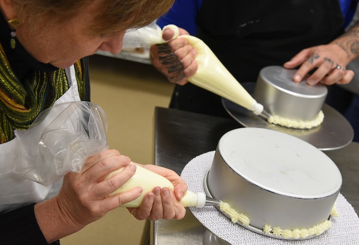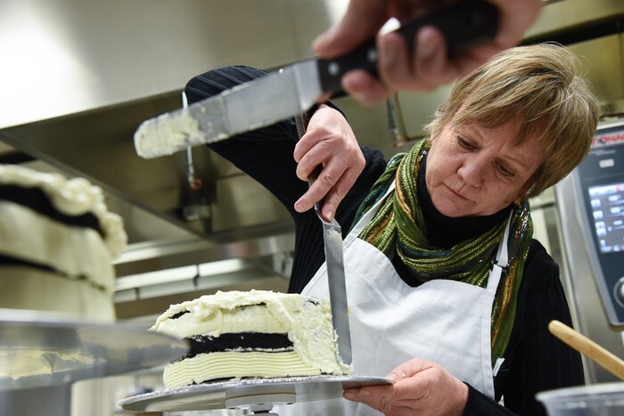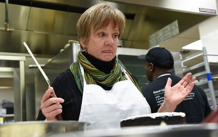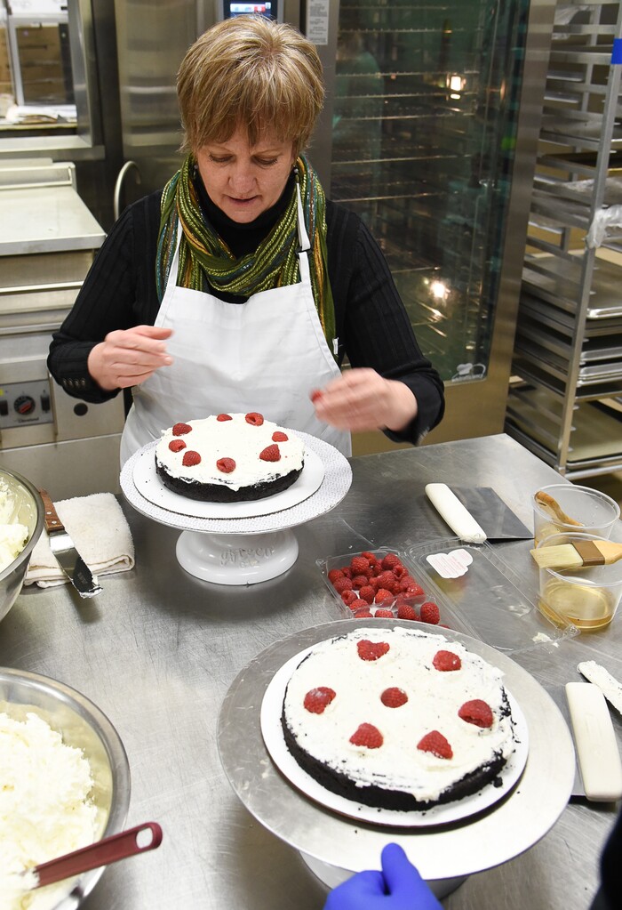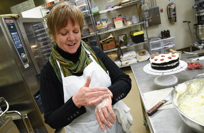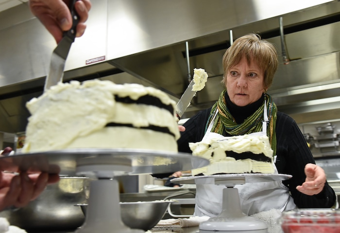 (Francisco Kjolseth | The Salt Lake Tribune) Learning a new craft, actress Betsy West prepares for an upcoming role of a Southern Baptist bakery owner in North Carolina faced with a request to bake a cake for a gay couple getting married for Salt Lake Acting Company's production of "The Cake." A self admitted baking novice, West, in search of better authenticity in portraying her role received a one-on-one lesson from the chef's at Flourish.
