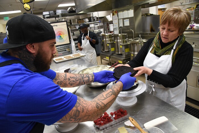 As part of preparing to don Della’s apron and wield her offset spatula, West learned how to ice and decorate a cake at Flourish Bakery, which operates out of Salt Lake Community College. It trains and employs people who are recovering from substance use disorders, with the goal of preparing them for careers as pastry chefs.