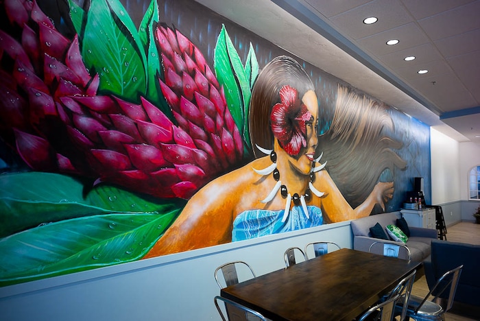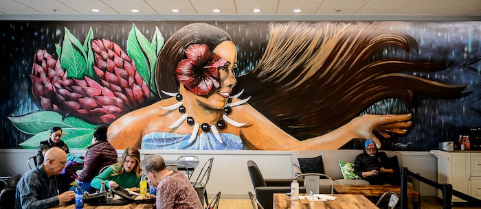 While parents Loi and Tualagi Sagato and all five of their children own the business, other relatives, spouses and even some of their children’s friends jumped in to help. A cousin, Aljay Fuimaono, painted the breathtaking wall-length mural, a Pacific-inspired portrait of mom Tualagi Sagato.
