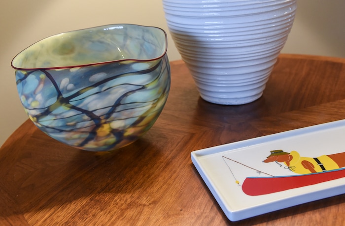 Blair Tomten’s home has neutral tones in the living room and an abundance of artwork on the walls. It’s warm, inviting and full of things.