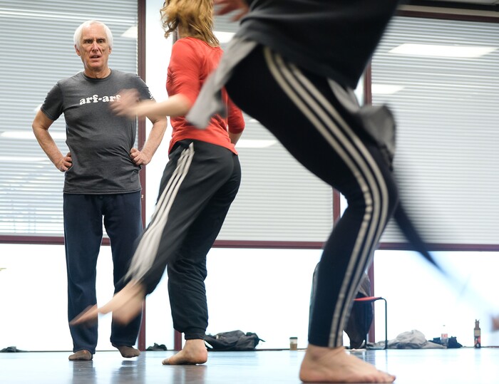 (Francisco Kjolseth | The Salt Lake Tribune) Choreographer Stephen Koester, a Professor as well as Chair in the Department of Modern Dance at the University of Utah works with dancers at the Rose Wagner Performing Arts Center Black Box Theater recently for an upcoming performance. As he gets ready to retire, this will be his final performance with the Ririe-Woodbury Dance Company.