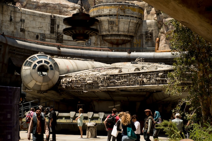 The Millennium Falcon looms overhead, the open-minded Oga’s Cantina welcomes droids (and is the first spot at Disneyland to serve alcohol) and treasures from every iteration of “Star Wars” are scattered throughout Dok-Ondar’s Den of Antiquities.