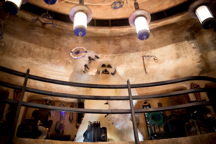 Every scary part of the galaxy has an even scarier watering hole, and Oga’s Cantina fills this role. The cantina will be immediately familiar to “Star Wars” fans, as it looks a lot like the scum magnet in the film “A New Hope,” where Luke and Obi-Wan Kenobi first meet Solo and Chewie.