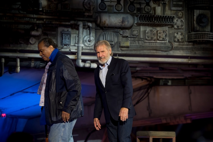 During a dedication ceremony on Wednesday, “Star Wars” creator George Lucas and stars Harrison Ford, Mark Hamill and Billy Dee Williams were on hand to open the park. Hamill said the last time he was at Disneyland with Lucas, it was for the opening of the Star Tours attraction. At the time, he thought it “inconceivable” that one of his movies would have its own ride at Disneyland. “Look at where we are today,” he said. “We get our own land.”