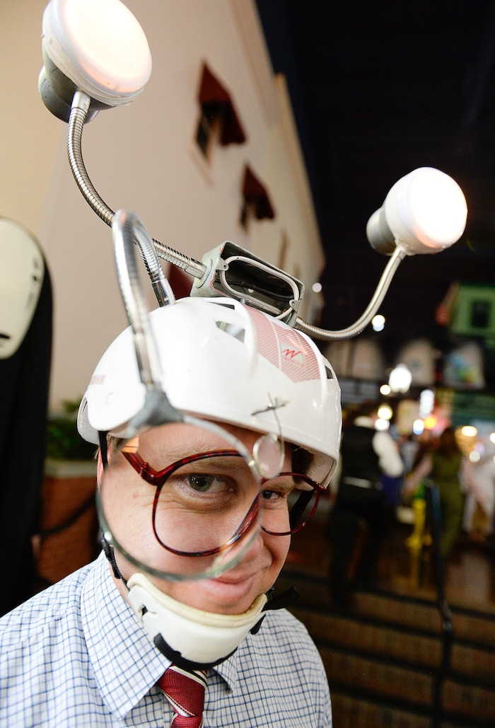 (Francisco Kjolseth | The Salt Lake Tribune) Chris Williams dressed up as a character from "Honey I Shrunk the Kids," joins FanX's twice-annual "press conference," drawing cosplayers to Megaplex Jordan Commons in Sandy on Wed. June 12, 2019, for the announcement of the event's celebrity visitors.
