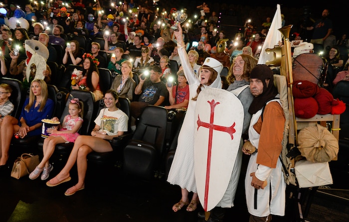 (Francisco Kjolseth | The Salt Lake Tribune) Monty Python and the Holy Grail comes to life through Roxanne and Harold Weir and Frank Buck, from left, as they join the festivities during FanX's twice-annual "press conference," at Megaplex Jordan Commons in Sandy on Wed. June 12, 2019, for the announcement of the event's celebrity visitors.