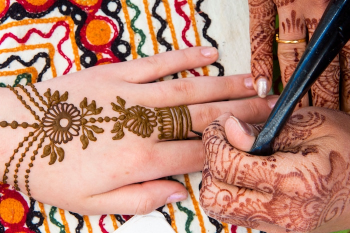 (Rick Egan | The Salt Lake Tribune) Jane Henna Artists, Rupali Munot paints a hand at the Utah Arts Festival, Saturday, June 22, 2019.