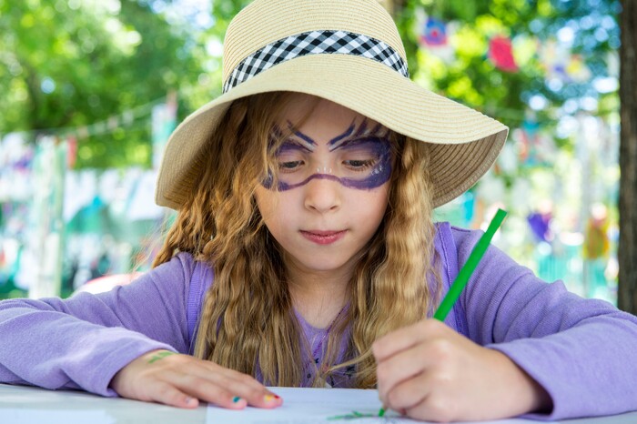 (Rick Egan | The Salt Lake Tribune) Jane Jane Virost, from Kaysville, works a a butterfly drawing in the Art Yard, at the Utah Arts Festival, Saturday, June 22, 2019.