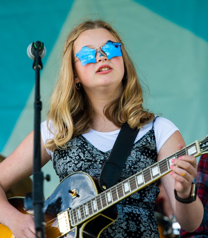(Rick Egan | The Salt Lake Tribune) Gwen McConkie, 15, sings for the band Sincerely, The Universe, at the Utah Arts Festival, Saturday, June 22, 2019.
