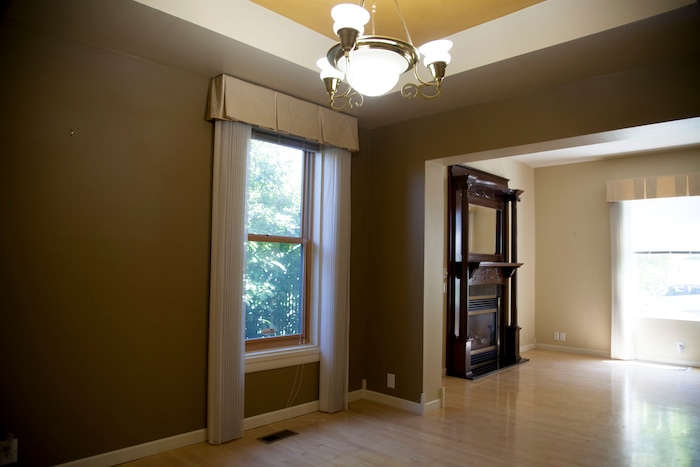 Sitting in the historic neighborhood on Wall Street adjacent to the state Capitol, the century-old, two-story home was rebuilt to include new wiring, plumbing, appliances and other features. The 1,743-square-foot house now has two bedrooms, 1½ baths, a living room with a fireplace, a family room, a den and a kitchen with a bar and dining room. The kitchen hallway stretches out to an open backyard patio. There’s a second washer and dryer in the house’s unfinished basement. A two-car garage is detached from the house.