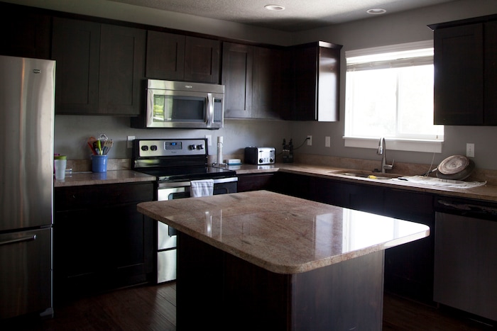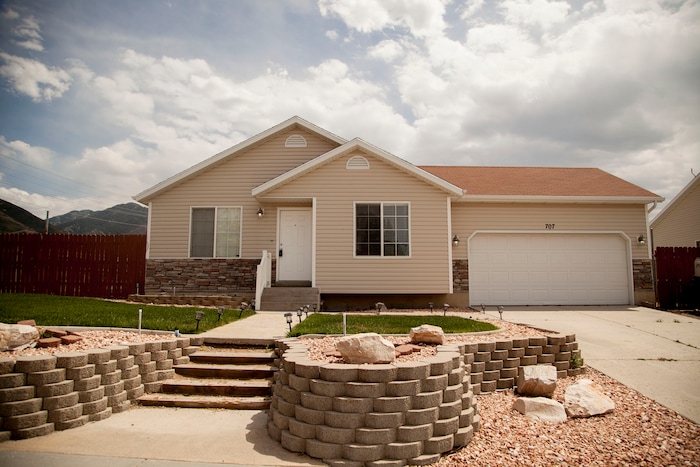 (Stella Yu | The Salt Lake Tribune) This 2,252-square-foot rambler home in Tooele comes with four bedrooms, three baths, a family room, a kitchen with a bar. The backyard provides room for RV parking, with garden beds on the side yard.