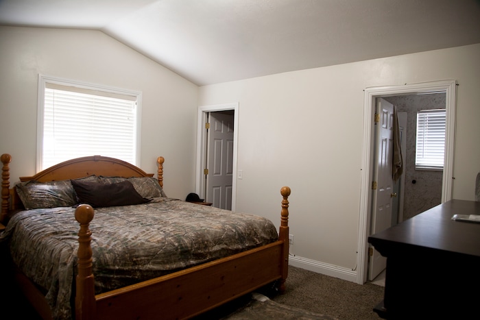 (Stella Yu | The Salt Lake Tribune) Built in 2003, the 2,513-square-foot two-story home in Lehi comes with three upstairs bedrooms, two and a half baths, a kitchen, a family room and two dens with an open floor plan. The house also includes a two-car garage and space for RV parking.