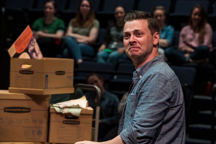 The retired English teacher from Taylorsville wasn’t having some sort of breakdown. She was an impromptu part of the one-man — plus the audience — play, “Every Brilliant Thing,” acting opposite star Michael Doherty. And she was loving every minute of it.