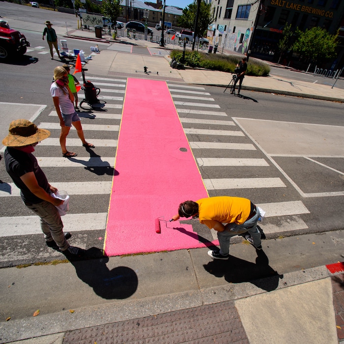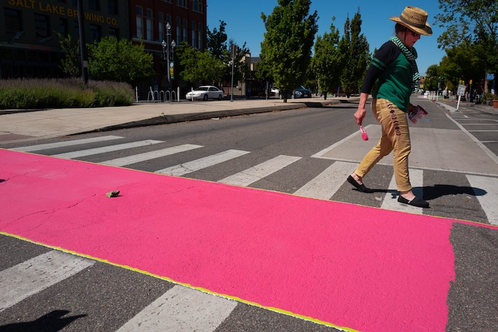 The crosswalk mural will be unveiled on Saturday, Aug. 24, on the pavement between the Rose Wagner Performing Arts Center, at 138 S. 300 South, and the parking lot next to Squatter’s Pub. The unveiling will be part of the center’s annual Rose Exposed event, which celebrates the dance, theater and music organizations that call the center home.