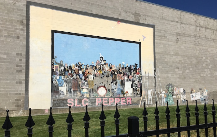 Arizona-based muralist Gina Ribaudo said it was cool to see “SLC Pepper” while she painted her “Legends of Rock” mural a block north, at The Gateway shopping complex, in July. It depicts eight icons of rock ’n’ roll, from David Bowie and John Lennon to Freddie Mercury and Prince.