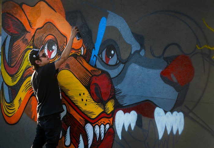 Street art goes back to the graffiti artists of the 1980s, Haworth said, tagging subway cars in cities like New York and London. “It was the bad boys around town, doing it for free, and there is still that ethic attached to it,” she said. “We’re the feeble ones, the muralists, compared to the true graffiti artists.”