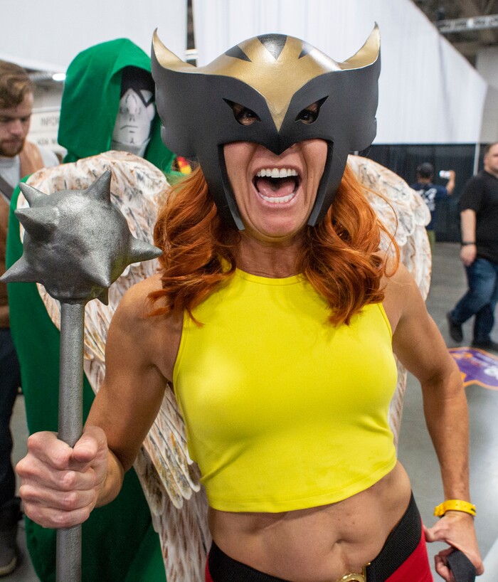 (Rick Egan | The Salt Lake Tribune) Cindy Henry from Tremonton dresses as "Hawk Girl" on the opening day of Fan X Comic Convention at the Salt Palace in Salt Lake City, Thursday, Sept. 5, 2019.