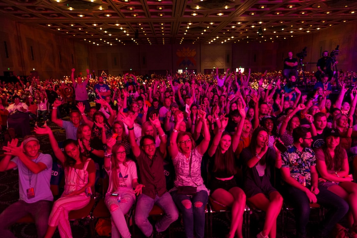 (Alex Gallivan | Special to Salt Lake Tribune ) The FanX Salt Lake Comic Convention crowd attending an appearance by Spider-Man actor Tom Holland on Saturday, Sept. 7, 2019, at the Salt Palace Convention Center.
