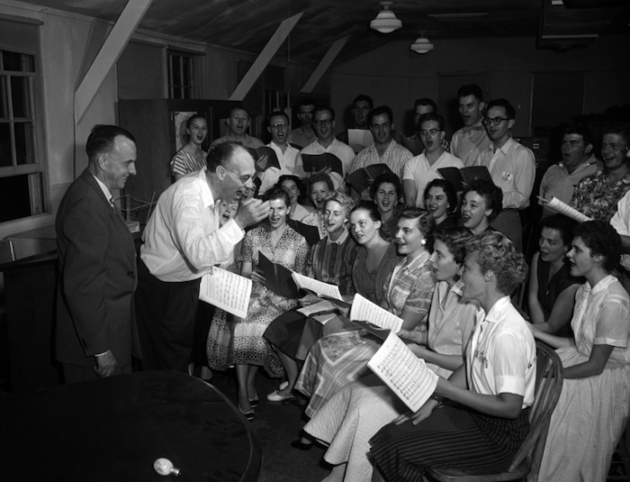 (Photo courtesy Utah State Historical Society) Utah Symphony conductor Maurice Abravanel leads a rehearsal in 1957.