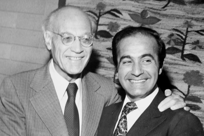 (Tribune file photo) Long-Time Utah Symphony conductor Maurice Abravanel with his successor Varoujan Kodjian in November 1979.