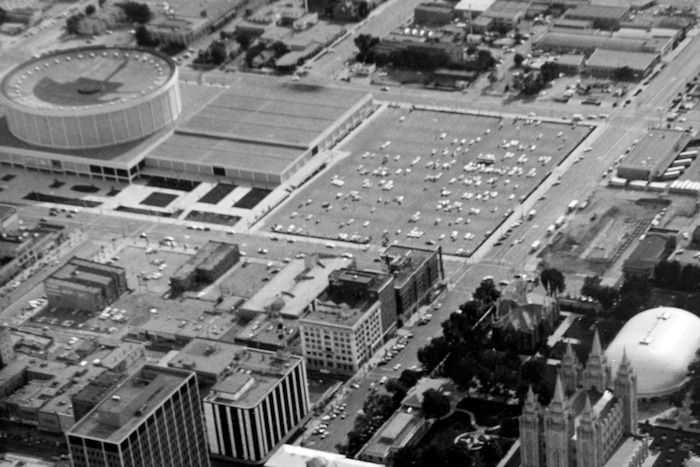 (Photo courtesy of Utah Symphony) The parking lot at the Salt Palace is seen in this undated photo. The site would later become the home of Abravanel Hall.