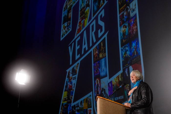 Walking into the South Jordan theater building for the 20th anniversary, Gail Miller said, “it still looks brand new.” (The location at The District opened in 2006.)